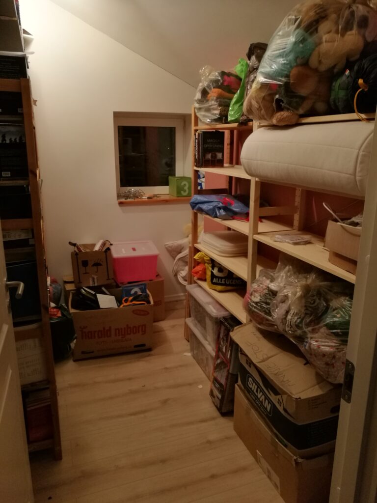Vi havde fået købt og afhentet i IKEA et par ekstra reoler, som Flemming fik sat op i disponibelt rum oppe på førstesalen. Det var nemlig ikke nok med de reoler, der allerede var sat op.