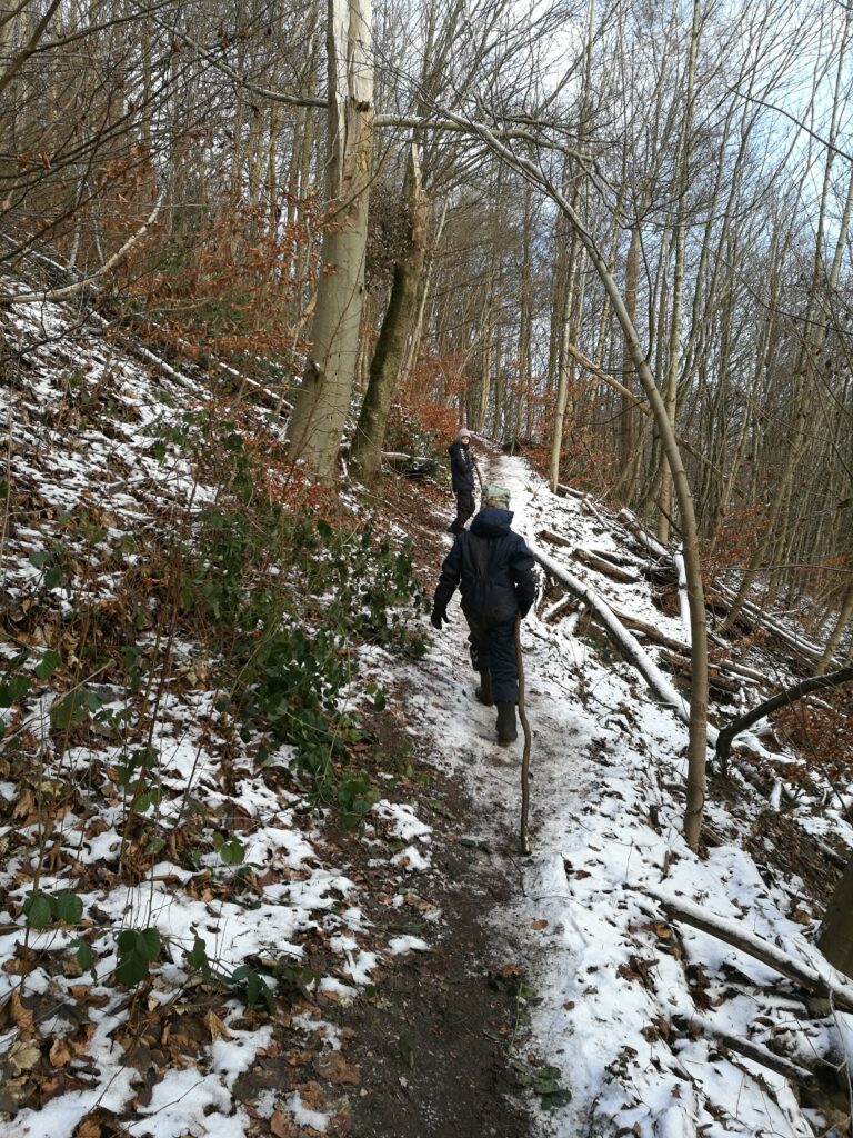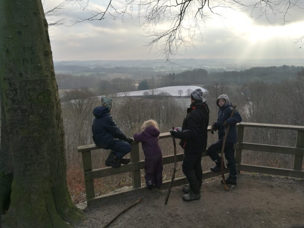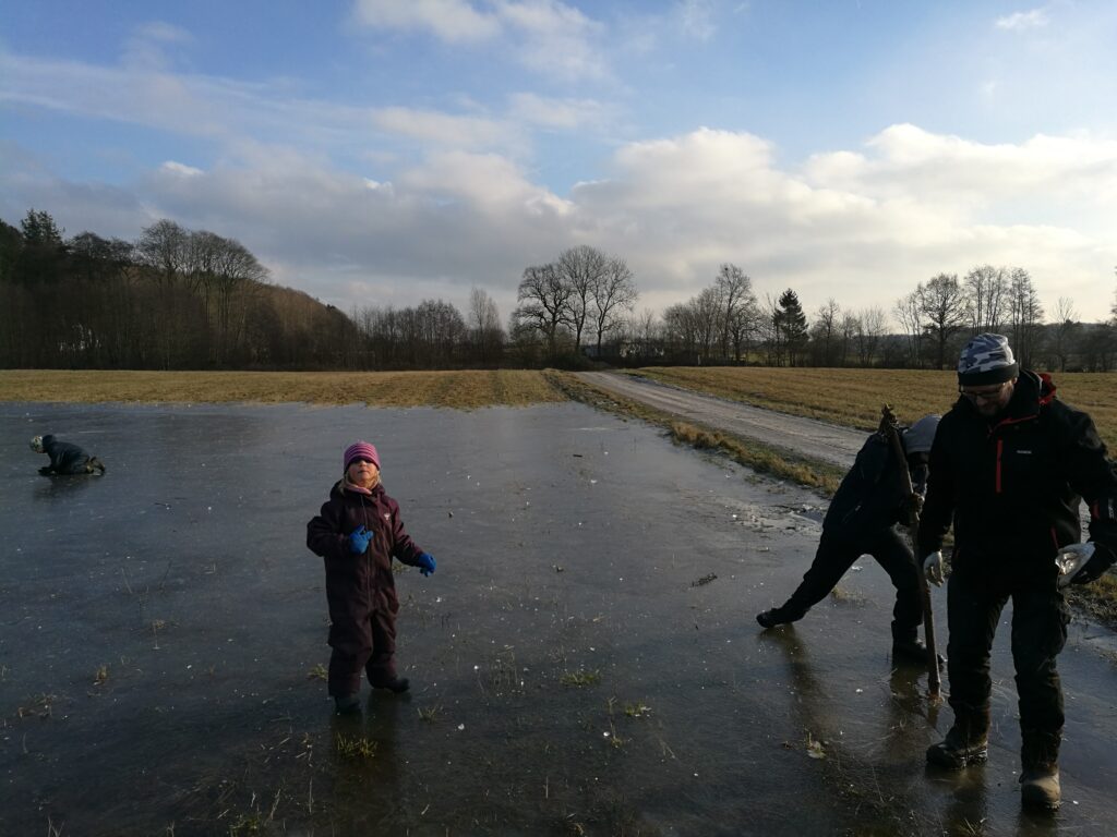 Søndag var det koldt, men super flot vejr og vi trængte alle sammen til at komme ud og gå tur, så vi fik afleveret Alfred til en legeaftale, og så kørte vi andre afsted. Vi fik gået en super dejlig tur i godt bakket landskab, og kom også fordi noget vand på en mark, som var frosset til is. Det var næsten ikke til at få børnene med derfra igen 🙂
