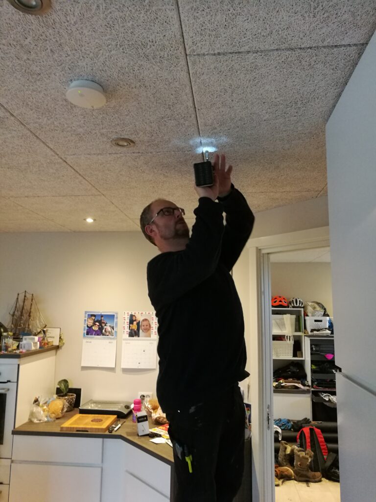 Weekenden i uge 3 fik Flemming sat nogle skruer i de loftsplader i køkken-alrum, som manglede.