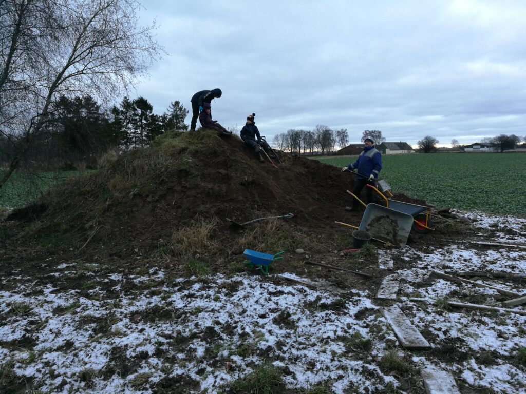 Dertil har der bare været ret meget regnvejr, som ikke rigtig tilskynder lysten til at komme ud. Flemming har dog været godt til at komme ud og grave lidt i jordbunken og få flyttet jord rundt, så der kan blive jævnet lidt ud. Det er ganske god motion, og børnene synes også det er hyggeligt at “hjælpe”.