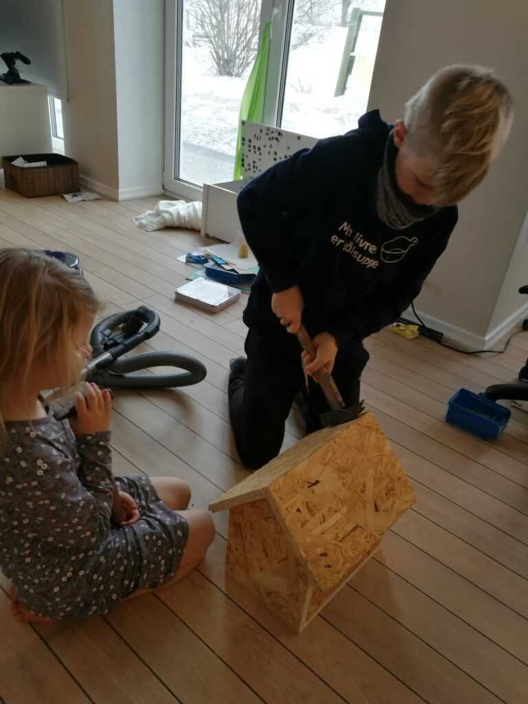 I starten af uge 5 blev Oskar inspireret over i skolen, og han besluttede sig for at hans far skulle hjælpe ham med at bygge et hus. Og Oskar er nok ikke anderledes end så mange andre børn – når først han har fundet på noget, han gerne vil lave sammen med sin far – ja, så kan det faktisk kun gå for langsomt, og planlægning er en by i Rusland. Men det lykkedes faktisk at fremmane lidt tålmodighed og planlægning, og det endte med at blive et ret fint hus 🙂
