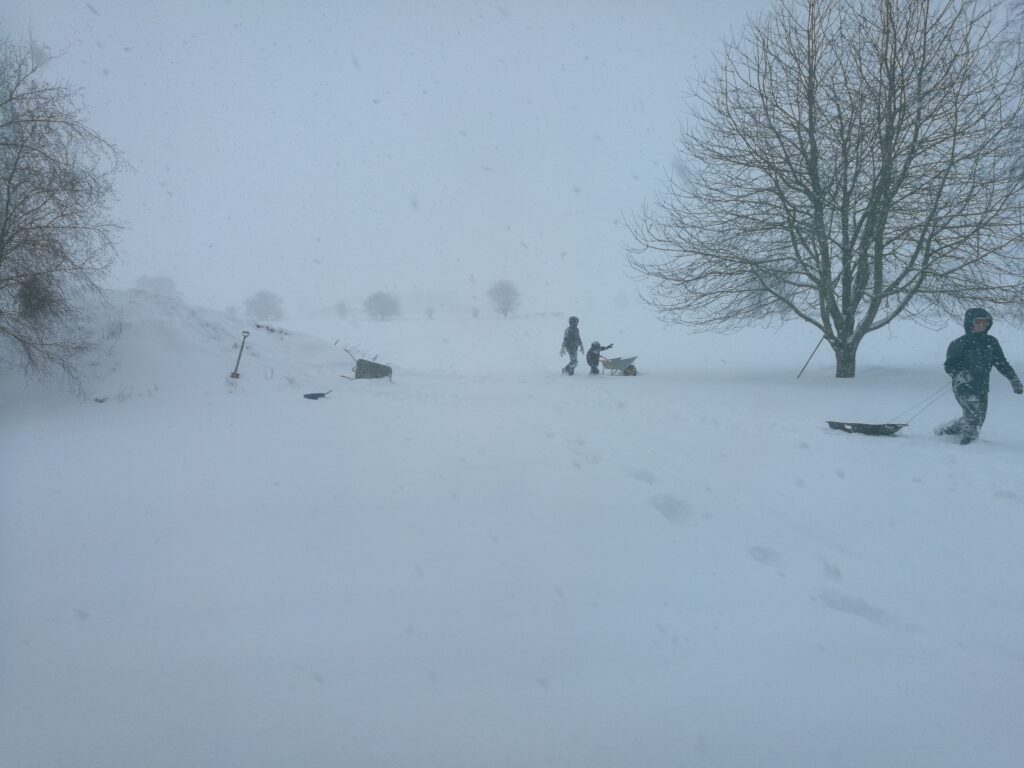 Trods vejret så lidt voldsomt ud, så kom børnene ud i det og fik afprøvet slæderne endnu en gang. Meeeen de kom nu relativt hurtigt ind igen.