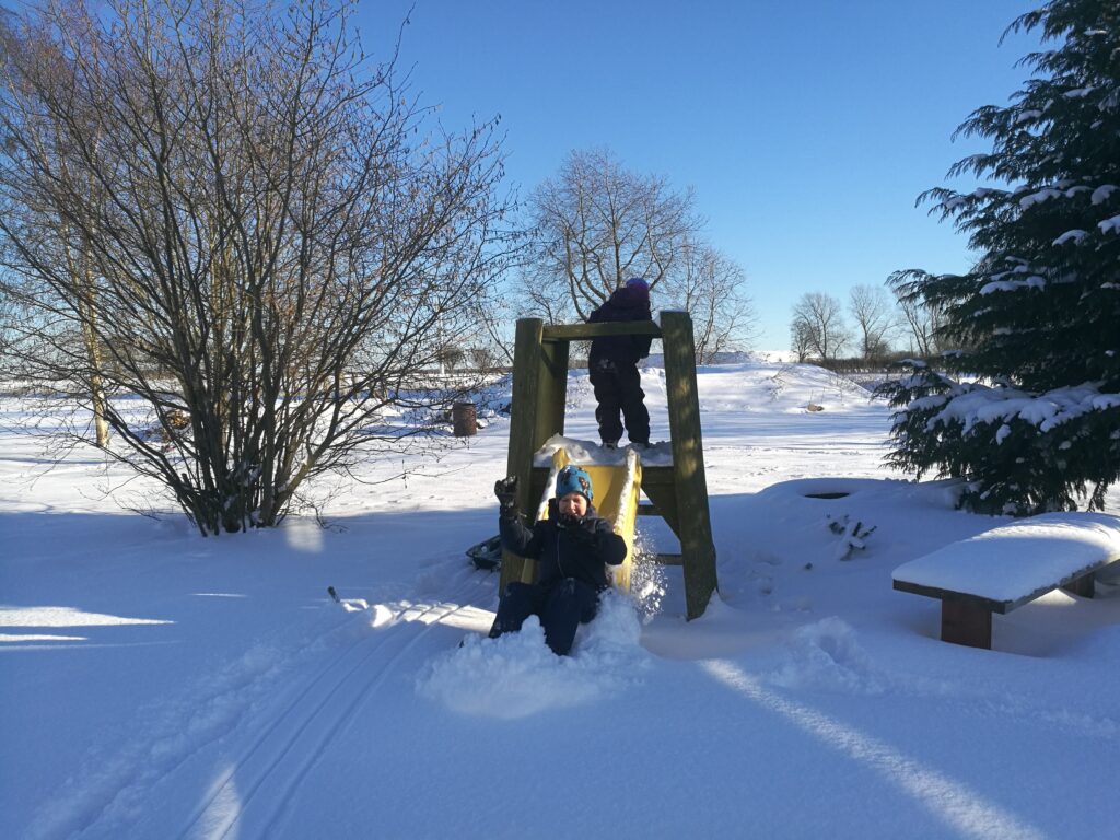 Imens hyggede Oskar og Mia sig over på rutschebanen 🙂