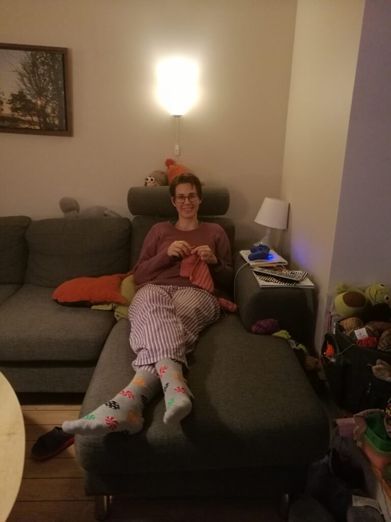 Når nu det sådan er rigtig vinter udenfor, så må man altså gerne virkelig hygge sig om aftenen 🙂 Og det gør jeg også. Og får hæklet som skulderen nu tillader det. Man fornemmer måske, at jeg har indtaget dét hjørne – Flemming synes i hvert fald, at jeg har ret meget skrammel liggende i vindueskarmen….