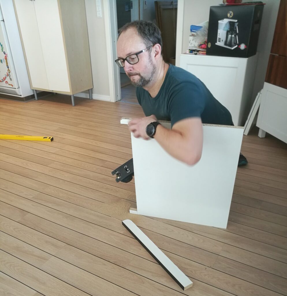 Lørdag gik med forskellige gøremål. Flemming fik fixet en hylde over det ene køleskab, hvor der manglede et varme-afledningshul.