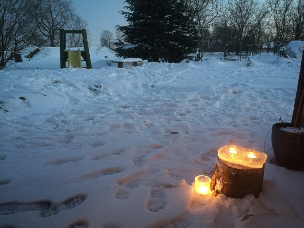 Hjemme igen fik jeg tændt lys i de hjemmelavede is-lygter.