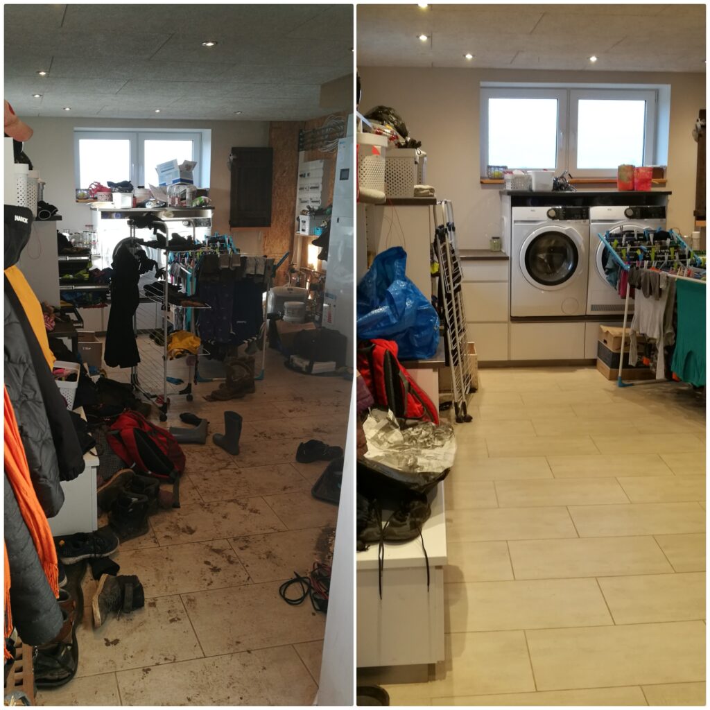 Lørdag fik jeg et flip – jeg var blevet tilpas træt af at kigge på et bombe-krater af et bryggers – så det gik jeg i rette med. Og selvom jeg ikke blev færdig – så var jeg ovenud godt tilfreds med det foreløbige resultat 🙂