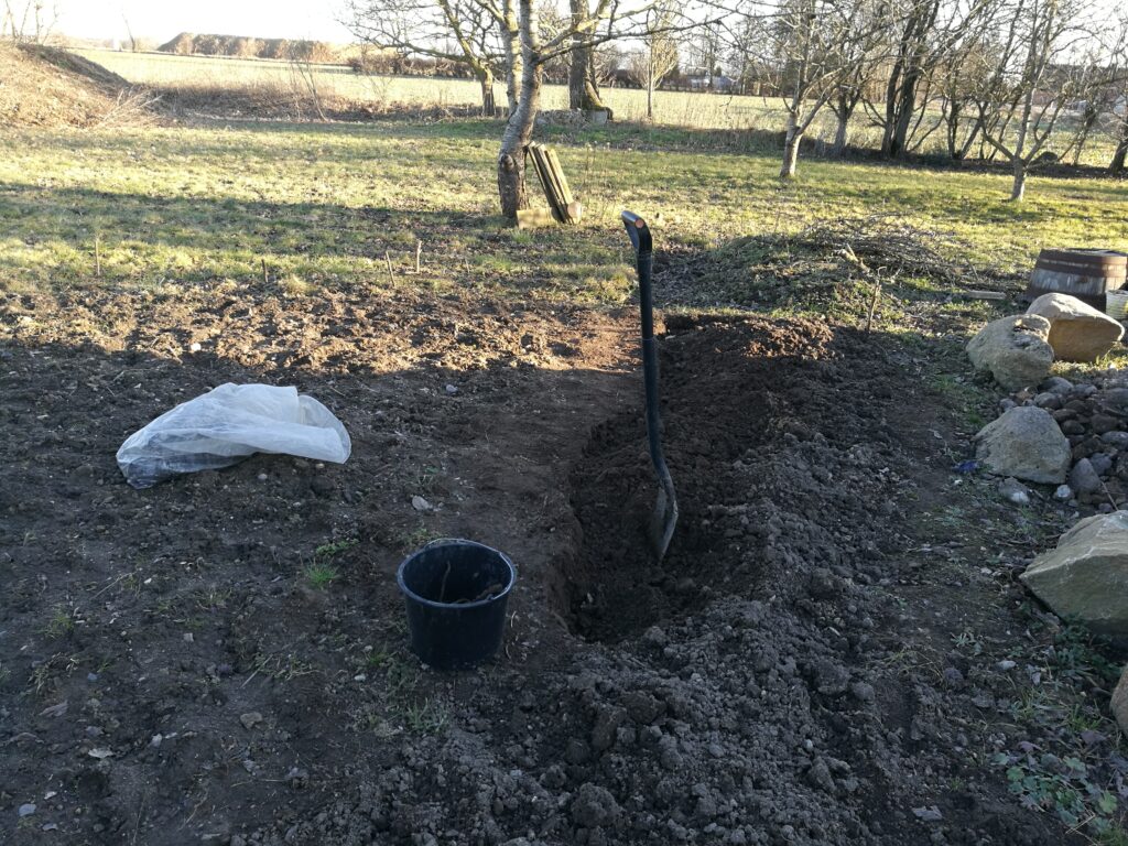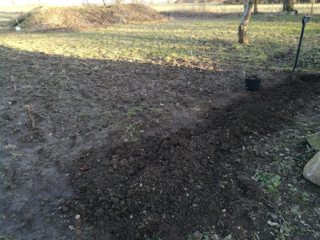 Solen var begyndt at skinne, så jeg gik udenfor og fik gravet lidt mere i køkkenhaven. Selvom det ikke virker til at være så stort et område, så tager det alligevel relativt lang tid at få det gravet. Og jeg har jo lidt en tidshorisont 🙂